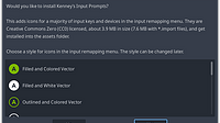 Whats new? This release adds an auto-installer for Kenney's Input Prompts! I hope other devs find this useful for quickly installing and configuring input icons for the remapping menu. I wanted to avo...